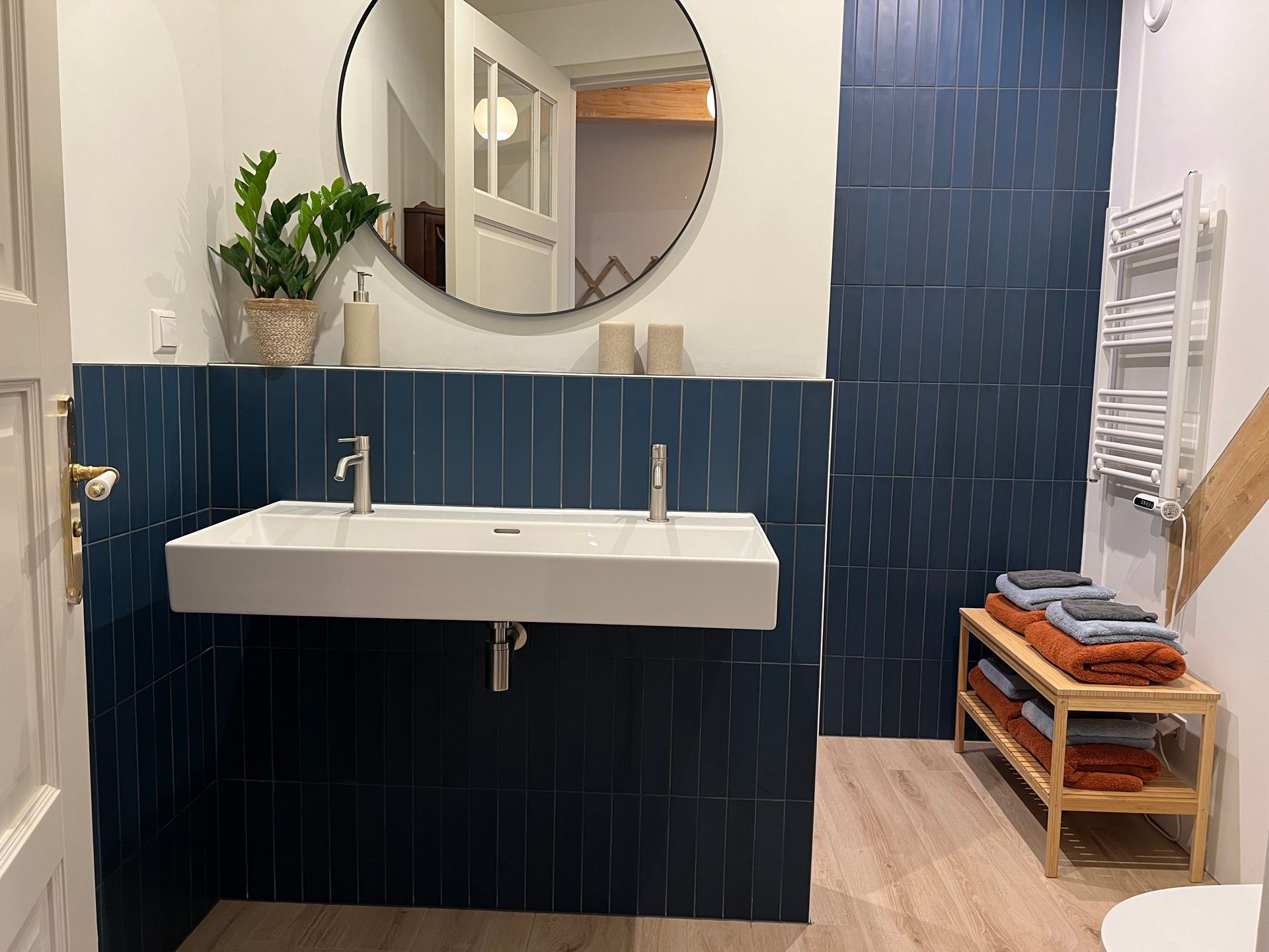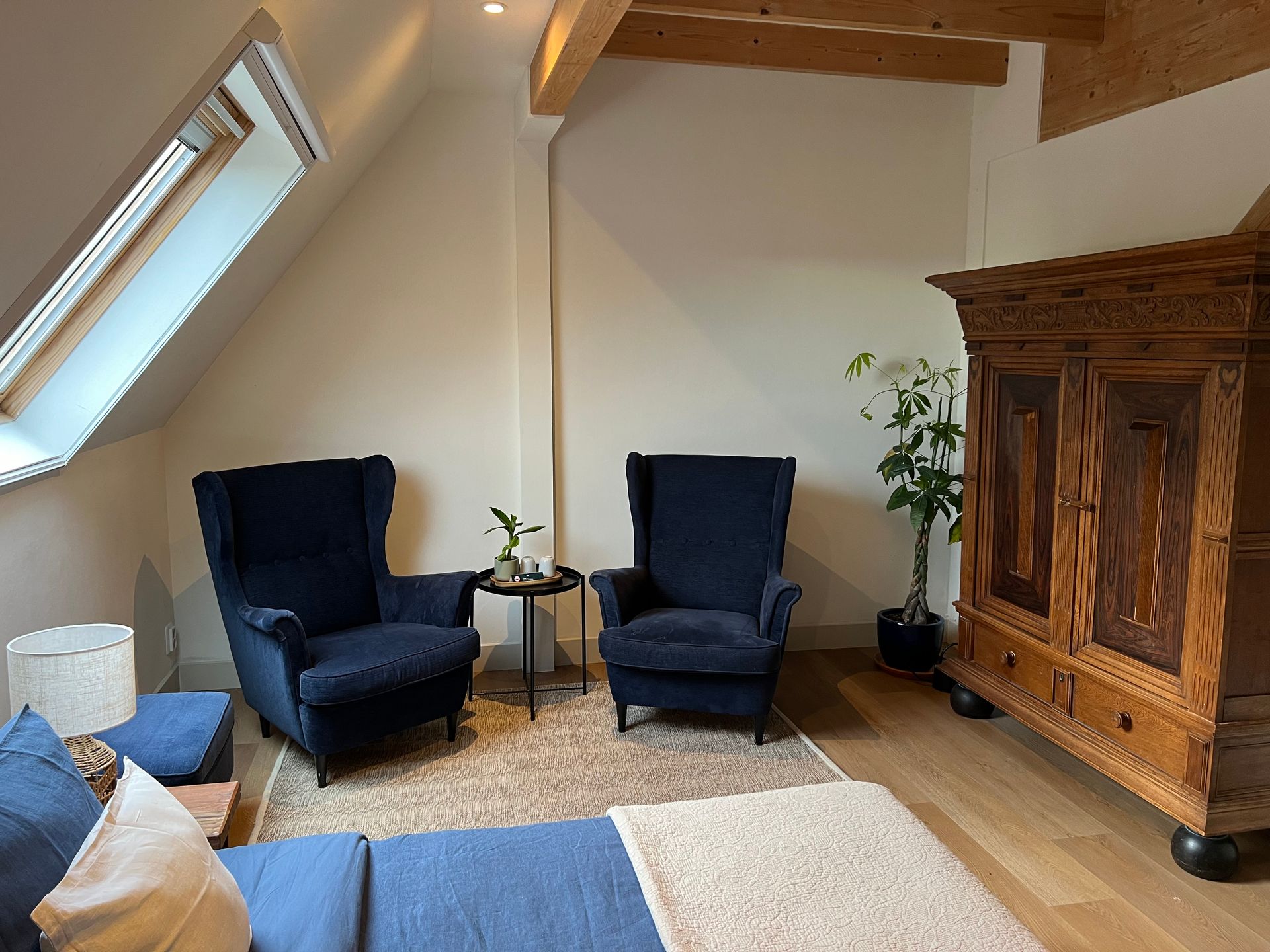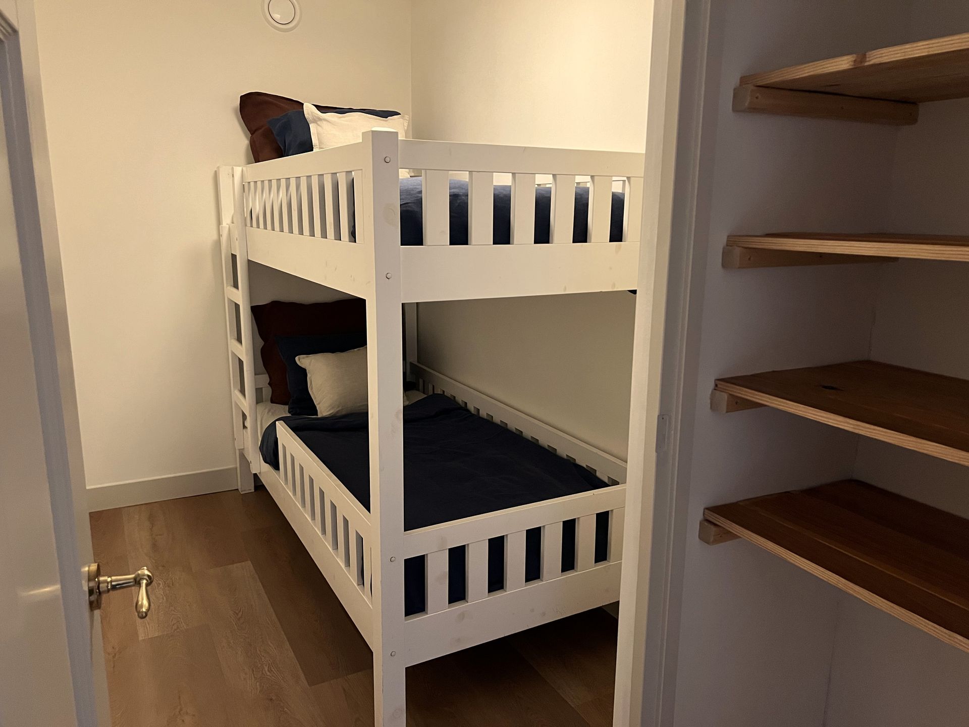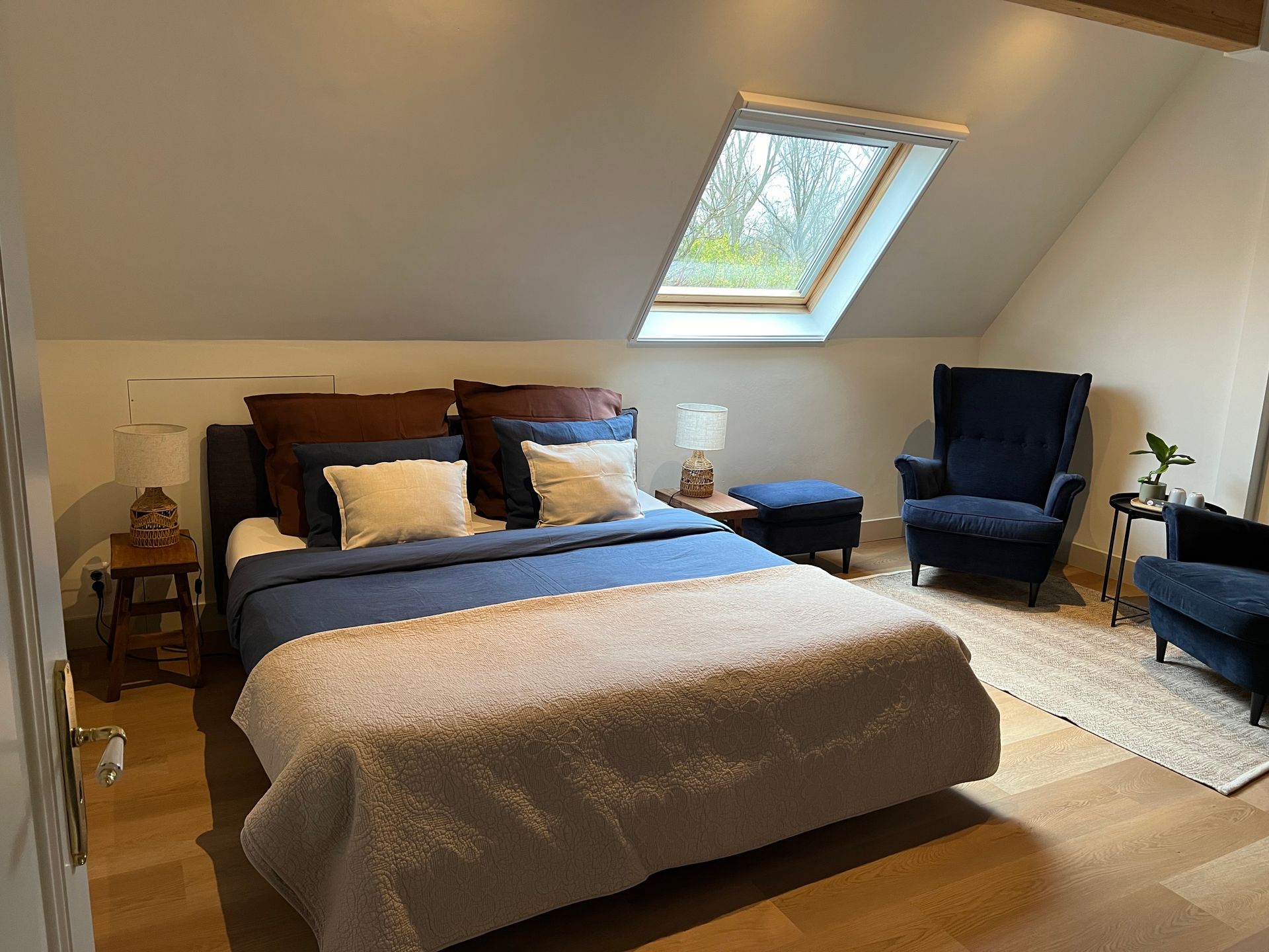 Two bedrooms: 1 large room with kingsize doublebed and sitting corner; 1 small room with bunkbeds.