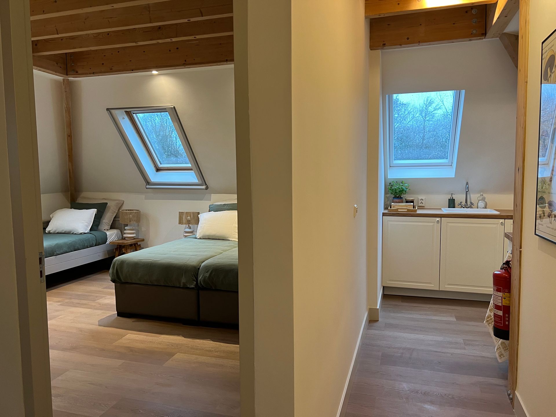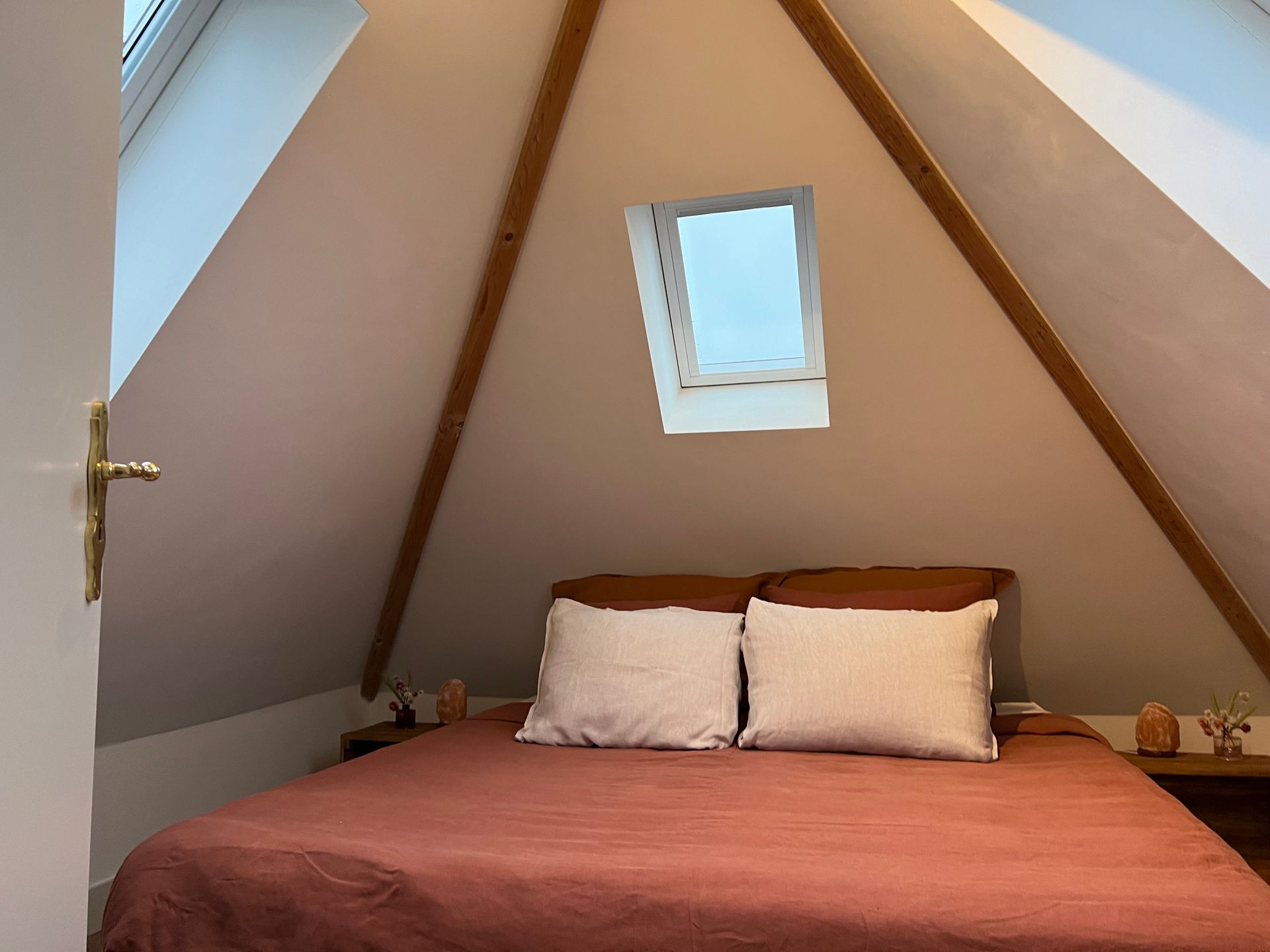 Bedroom 2: A spiral staircase brings you to the romantic attick with kingsize double bed (or 2 single beds on requests).